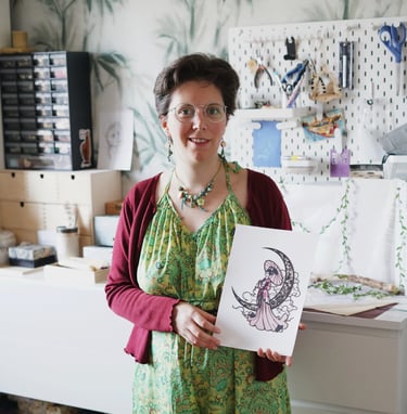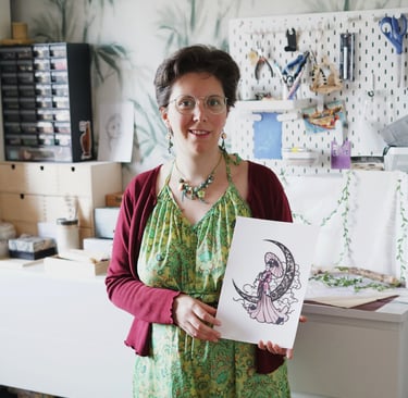 En septembre 2024, j'ai rejoins la coopérative CLARA. J'ai changé de stratégie pour ne plus me concentrer uniquement sur les salons. Ainsi est née la boutique, les créations personnalisées et le fait que je prospecte des entreprises.